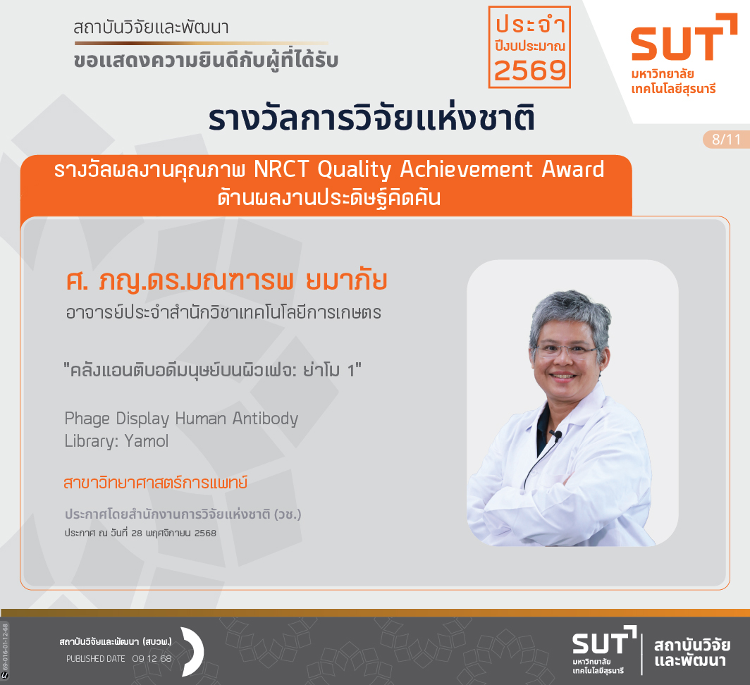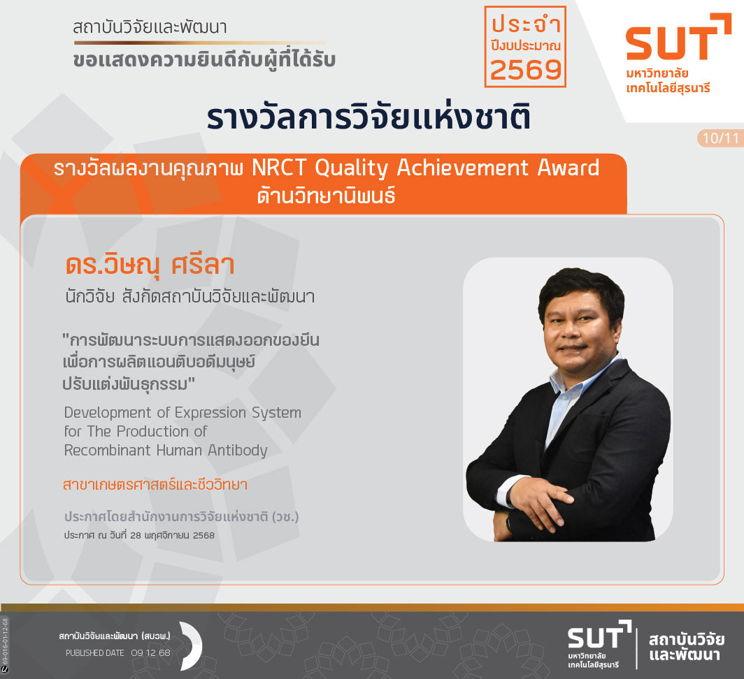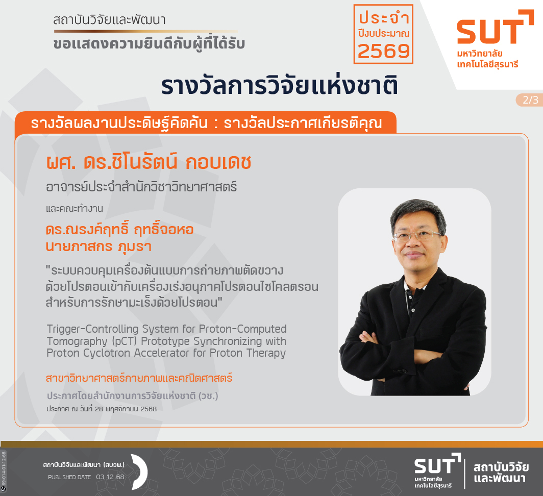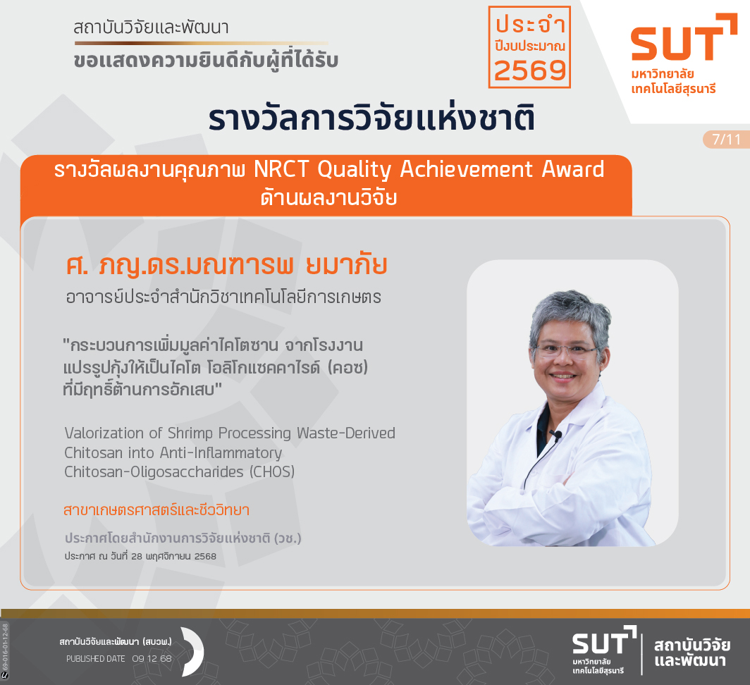 วช. ขอเชิญนักวิจัย มทส. เสนอผลงาน เพื่อขอรับรางวัลการวิจัยแห่งชาติ ประจำปี 2565 |