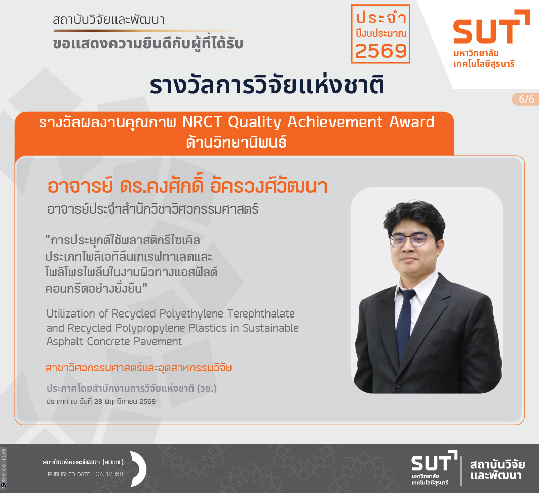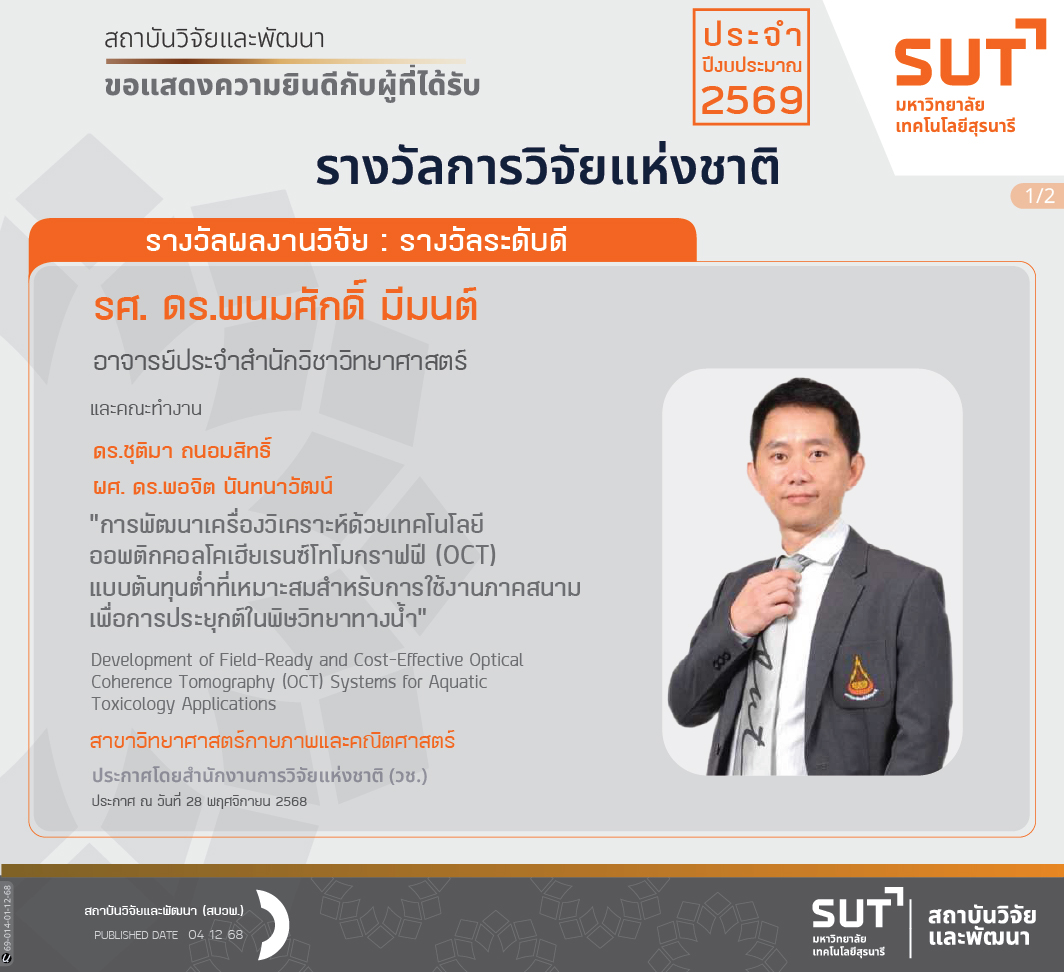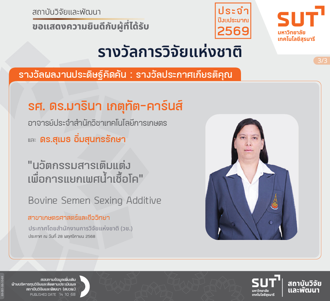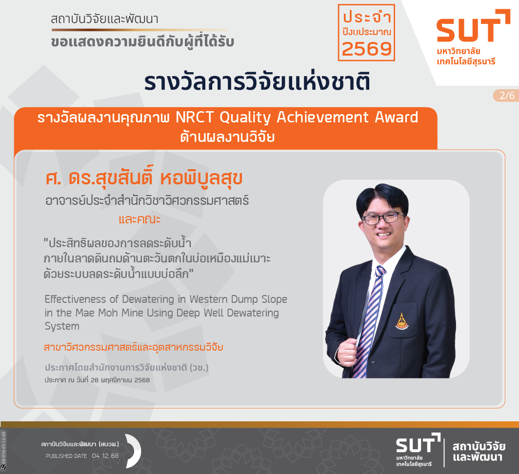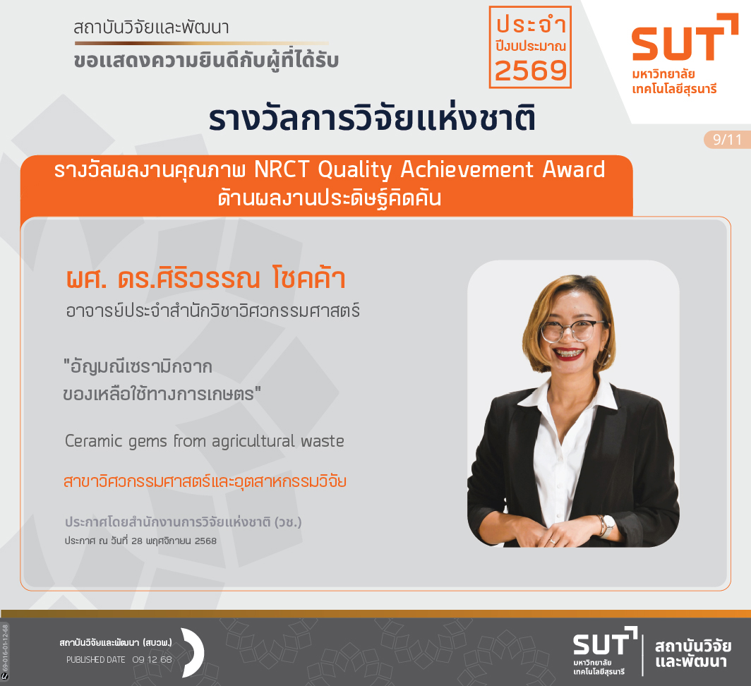 วช. ขอเชิญนักวิจัย มทส. เสนอผลงาน เพื่อขอรับรางวัลการวิจัยแห่งชาติ ประจำปี 2565 |