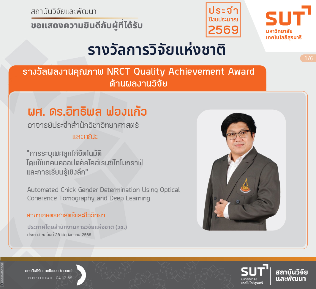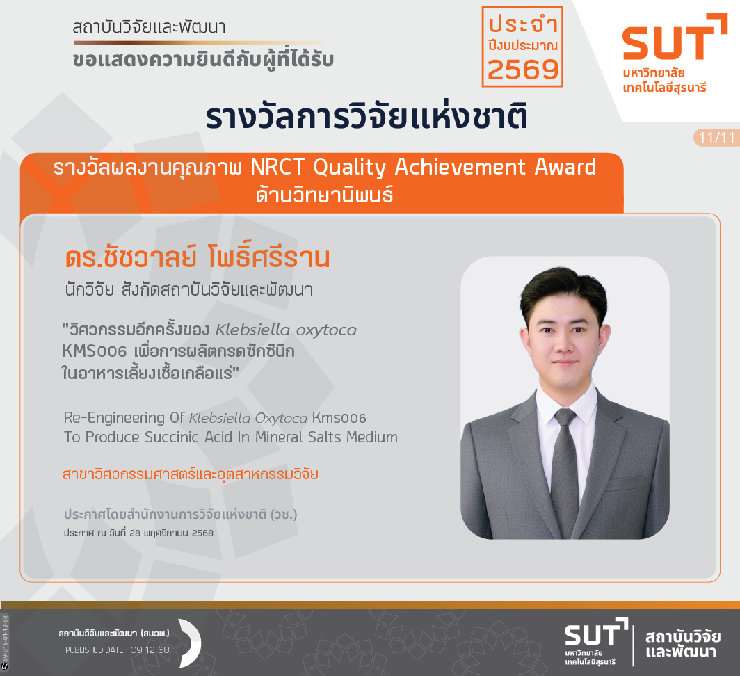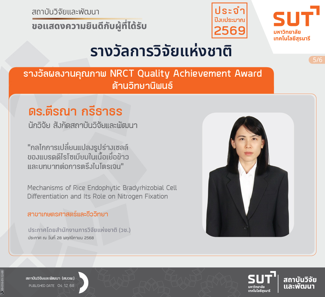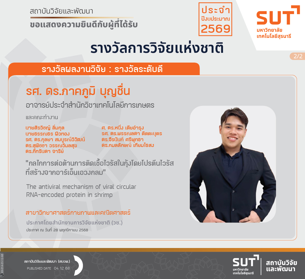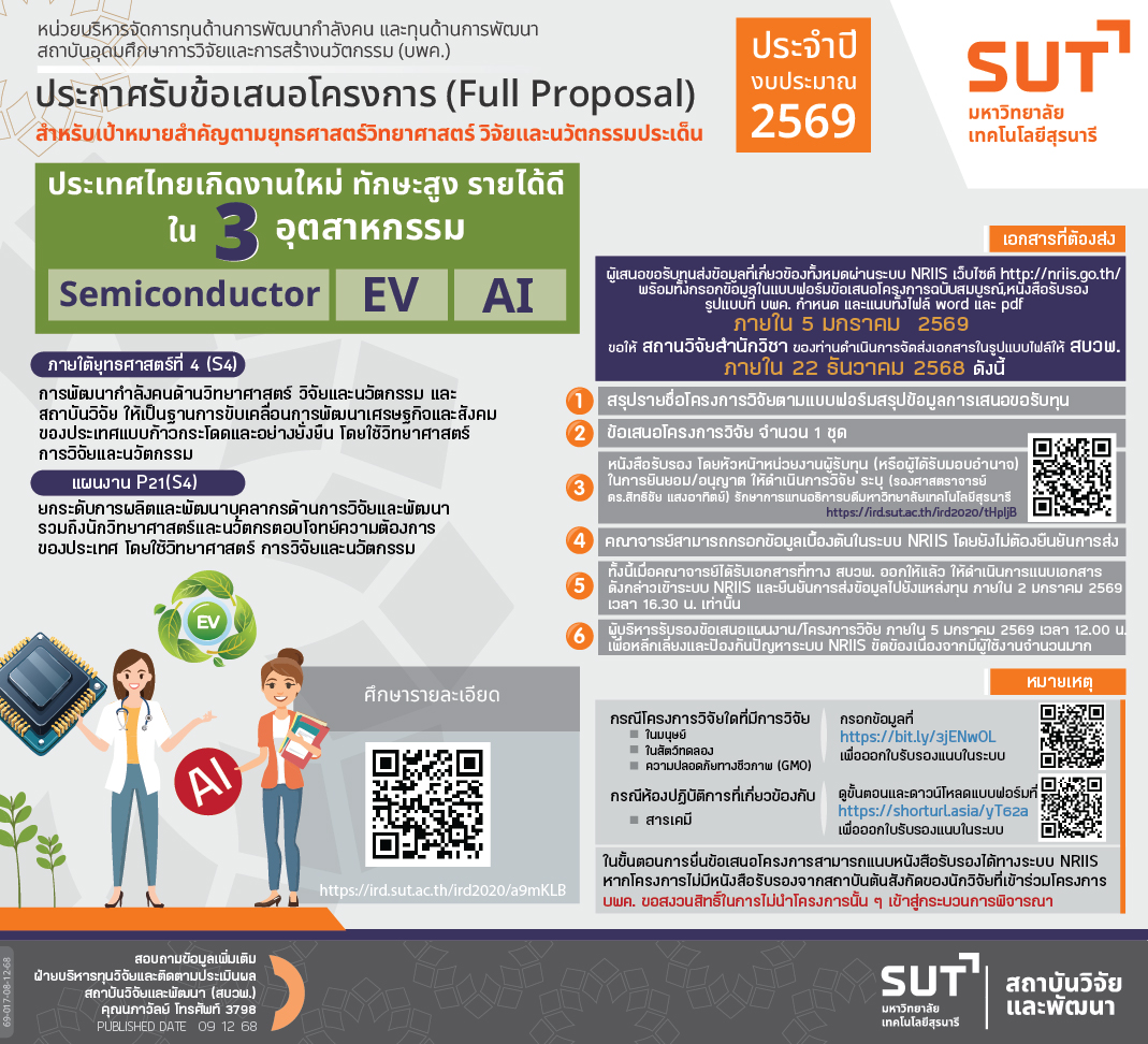สบวพ. และ อพ. สธ. มทส.ขอเชิญชวนคณาจารย์และนักวิจัย ส่งโครงการวิจัยเข้าร่วมสนองพระราชดำริฯ ประจำปีงบประมาณ พ.ศ. 2570 |