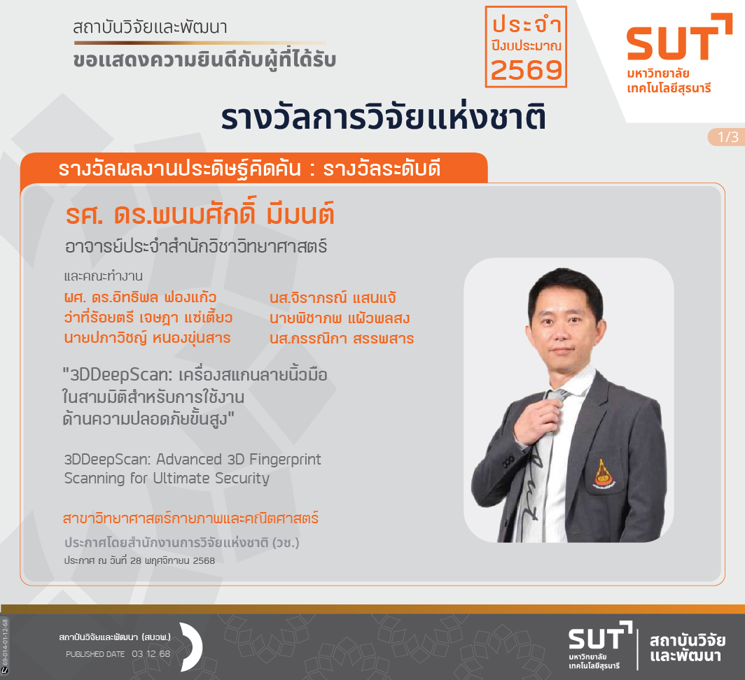 ขอแสดงความยินดีกับ นักวิจัย มทส. ผู้ที่ได้รับรางวัลการวิจัยแห่งชาติ ประจำปีงบประมาณ พ.ศ. 2564 |